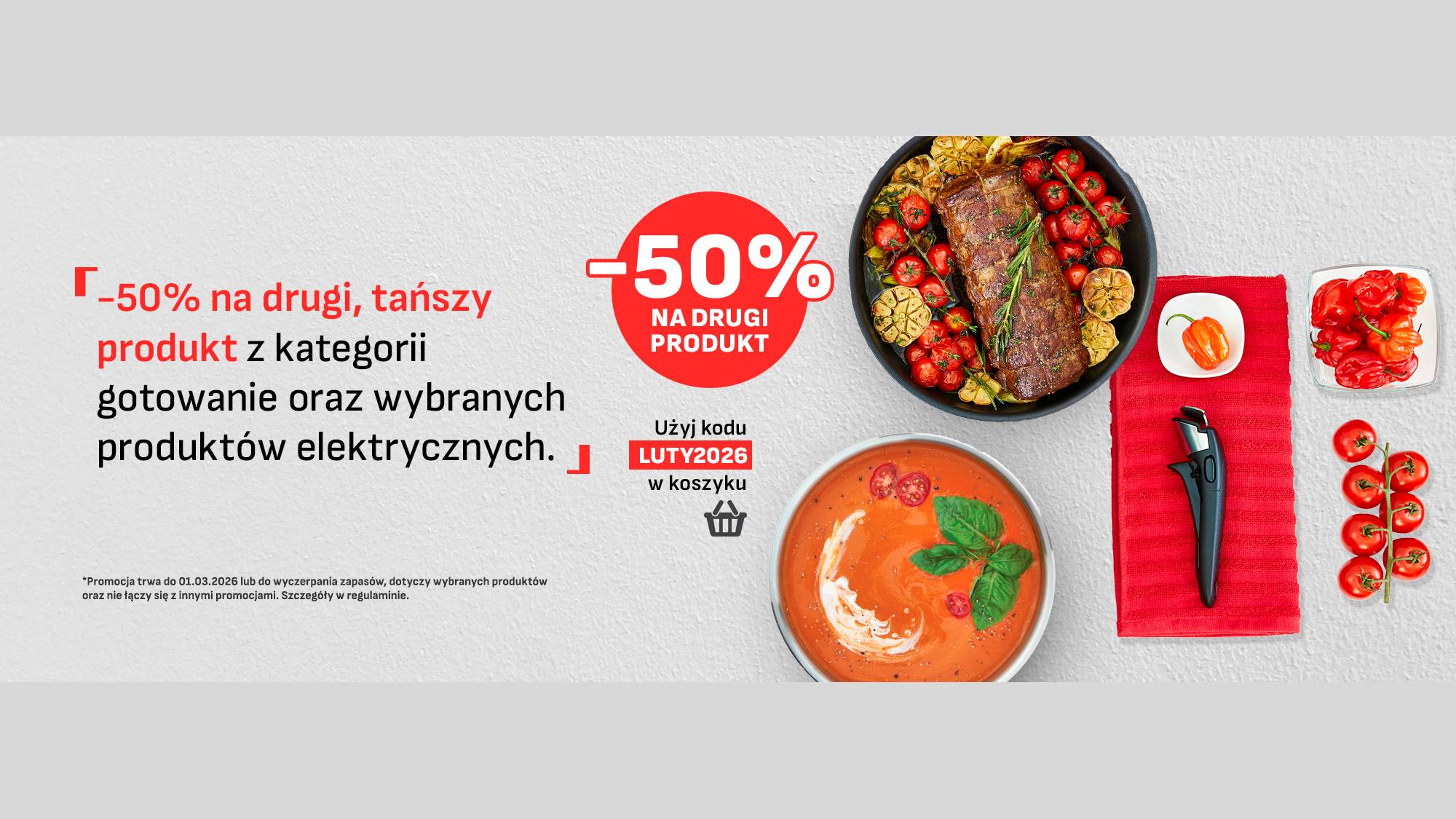 UWAGA: 50% zniżki na tańszy produkt dostępne będzie tylko wtedy, gdy dodasz do koszyka produkty spełniające warunki akcji oraz wpiszesz kod LUTY2026 (wielkość liter ma znaczenie).