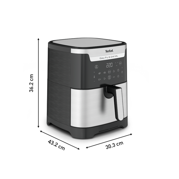 TEFAL Easy Fry&Grill XXL nasze sprytne rozwiązanie na szybkie, zdrowe i pyszne gotowanie bez kompromisów. W Tefal wierzymy, że codzienne posiłki mogą być łatwe, a przy tym pełne smaku dlatego stworzyliśmy urządzenie, które smaży i grilluje jednocześnie. Dzięki dużej pojemności i funkcji synchronizacji, wszystko jest gotowe w tym samym czasie bez stresu i zbędnego wysiłku. To więcej niż frytkownica to Twój codzienny kuchenny sprzymierzeniec.
