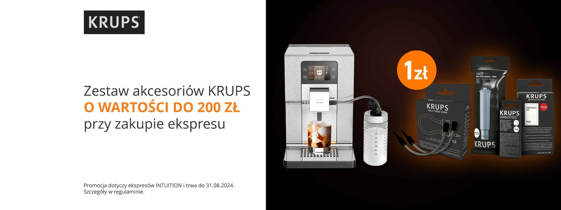 W dniach 12.07.2024-31.08.2024 kup wybrany model ekspresu automatycznego KRUPS Intuition (modele objęte promocją znajdziesz poniżej) i odbierz w prezencie akcesoria o wartości do 200zł za 1zł!