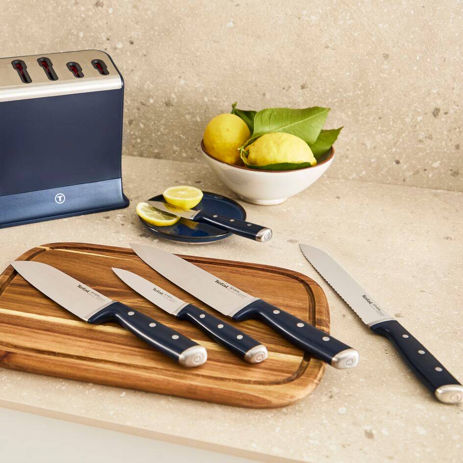 Tylko teraz! Specjalny zestaw 5 noży w bloku Tefal Ever Sharp w rewelacyjnej cenie. Skorzystaj z oferty, która już niedługo się skończy. Ever Sharp to rozwiązanie, które gwarantuje zawsze ostre noże. Specjalna konstrukcja bloku dba o ostrze za każdym razem, gdy wkładasz produkt do niego lub go wyciągasz.