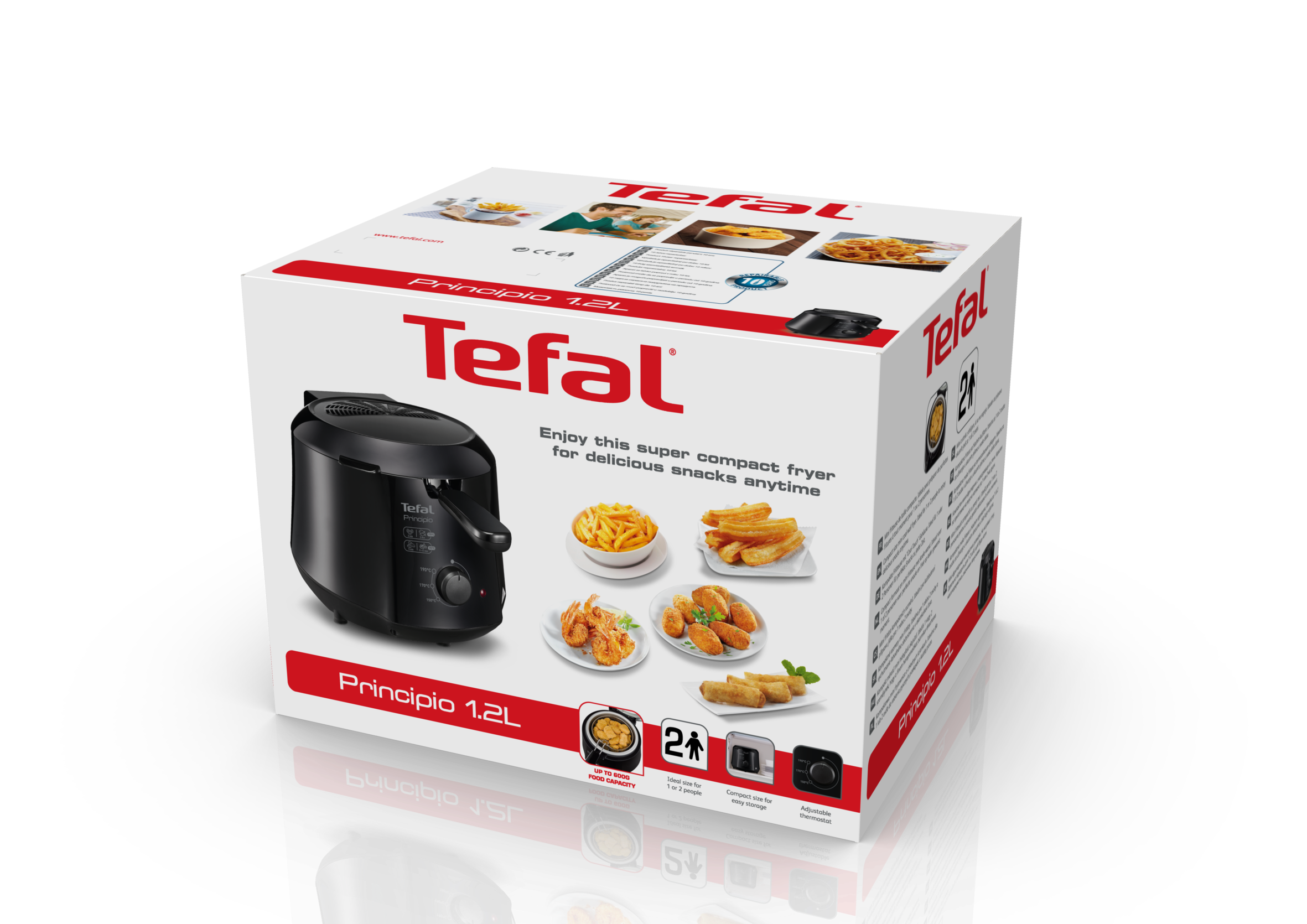 - Możesz rozwijać swoją pasję do gotowania: Z Principio możesz ugotować nawet 500 g frytek. Ta frytkownica jest idealna dla 1 lub 2 osób, aby cieszyć się pysznymi przekąskami w dowolnym momencie.