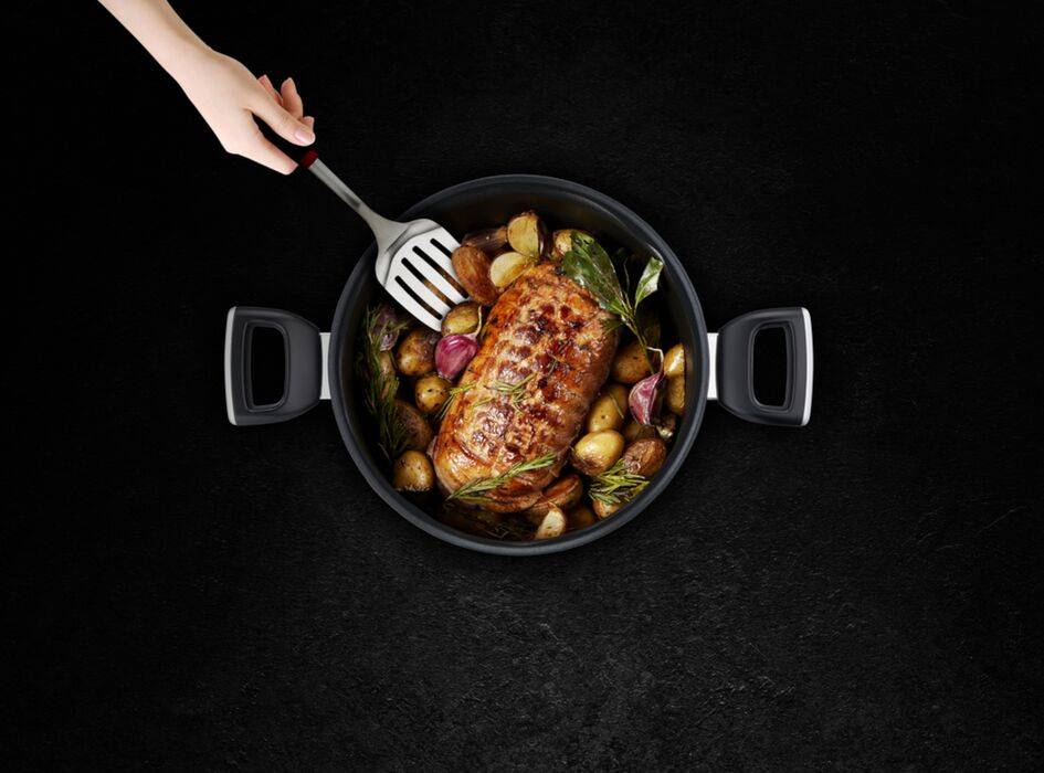 - Unikać przegrzewania: nagrzewać garnek na średnim ogniu i korzystać ze wskaźnika Thermo-Signal, by nie narażać powłoki na zbyt wysoką temperaturę.