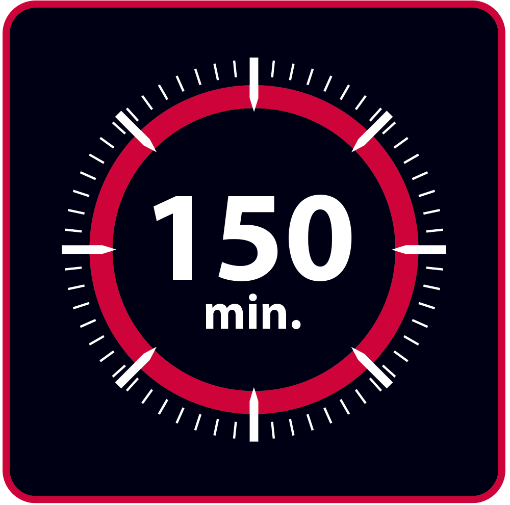 Silnik AC sprawia, że maszynka wykorzystuje 100% mocy, zapewniając zawsze taką samą wydajność i perfekcyjne rezultaty przez wiele lat. Pojemny akumulator pozwala na 150 minut pracy.