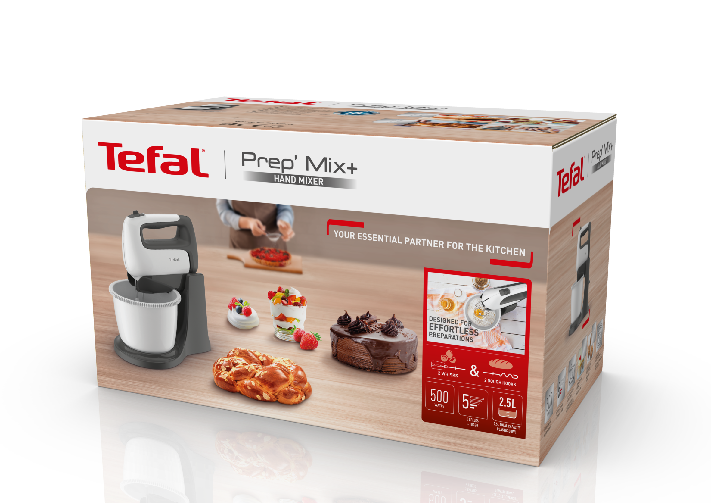 Odkryj mikser ręczny Tefal Prep'Mix+, twojego nowego niezbędnego partnera do pieczenia! Dzięki mocy 500 W urządzenie poradzi sobie z większymi i mniejszymi kuchennymi zadaniami. Dołączone trzepaczki ze stali nierdzewnej idealnie ubiją śmietanę, a stalowe mieszadła wyrobią ciasto na pizzę. Poznaj urządzenie o wielu możliwościach!