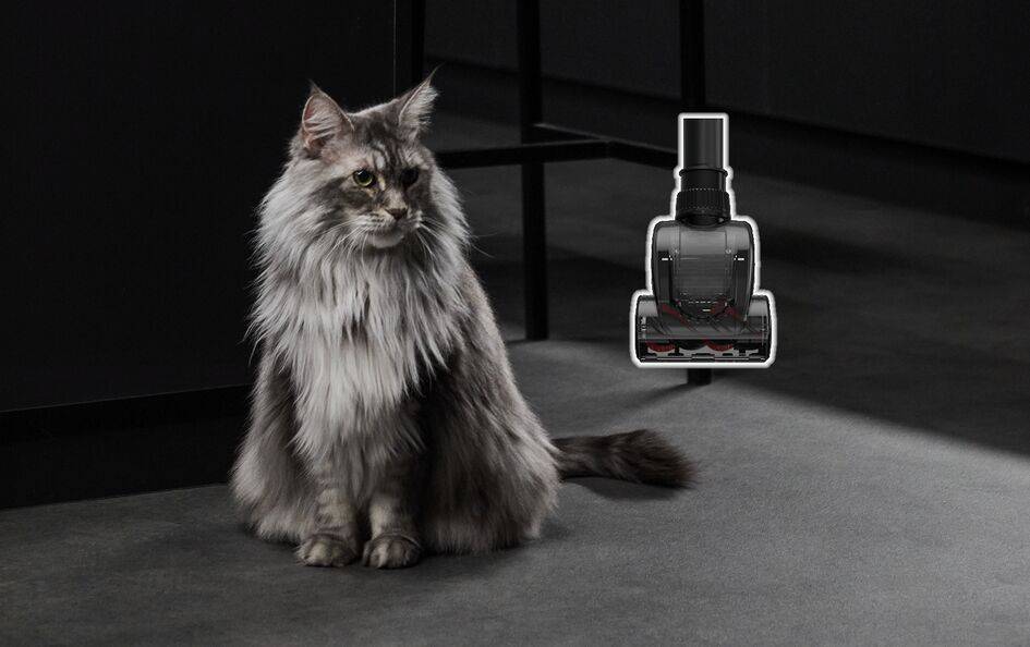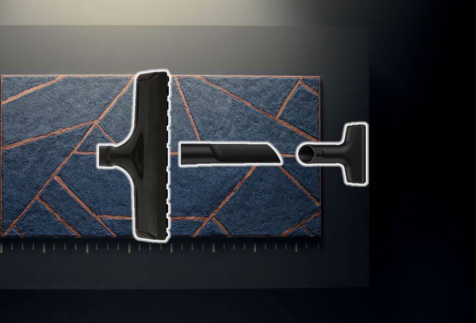 - Szczotka 2-pozycyjna umożliwia szybkie przełączanie między podłogami twardymi a dywanami – z wysuniętym włosiem chroni delikatne powierzchnie przed zarysowaniami, a po jego schowaniu skutecznie dociera głęboko w dywan, usuwając sierść, okruchy i piasek
