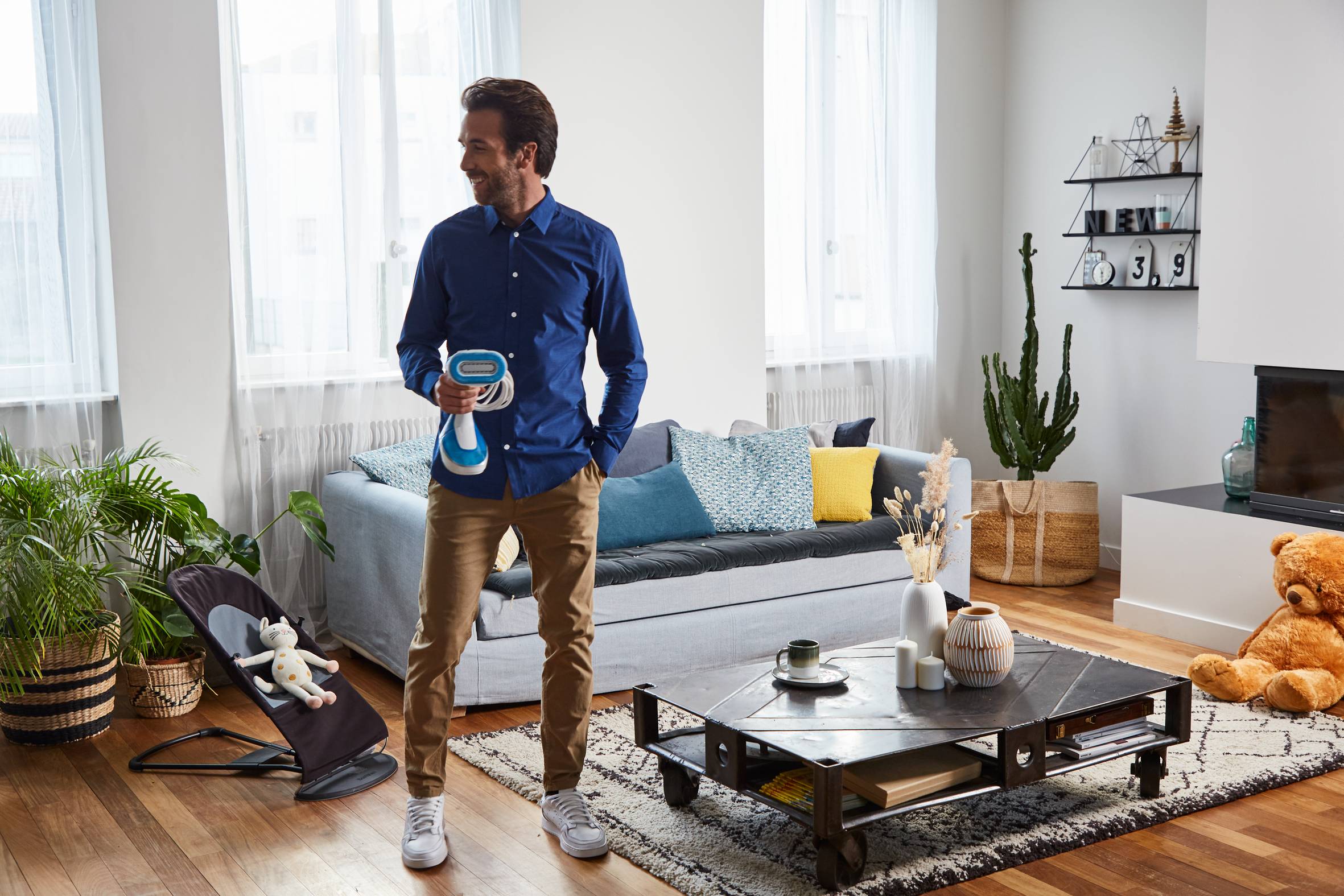 - Idealna do odświeżania zasłon i tapicerki: Parownica doskonale sprawdza się nie tylko na ubraniach, ale także na zasłonach, meblach tapicerowanych i pościeli.