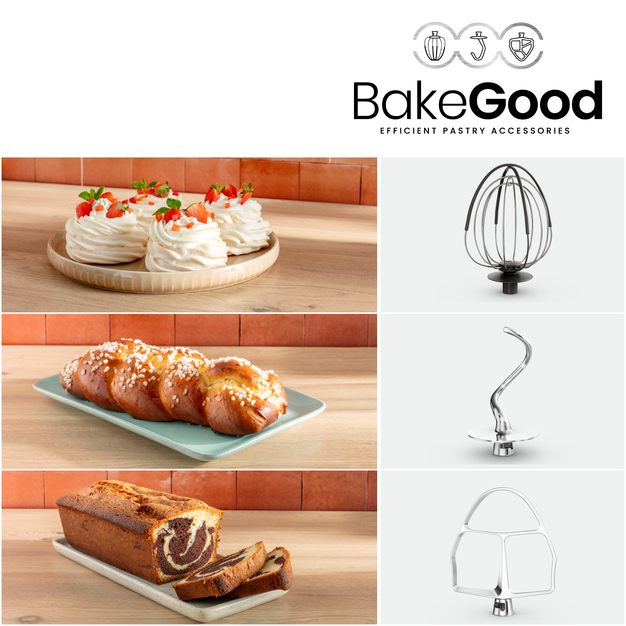Kompletny zestaw do pieczenia – trzepaczki, hak do ciasta i praktyczne akcesoria ułatwią każdy etap przygotowań. Mocny silnik 1100 W – niezawodna moc do ubijania, mieszania i wyrabiania nawet ciężkich ciast. Duża dzieża 4,6 l – zmieści do 10 białek, 40 babeczek lub 3 ciasta na pizzę.