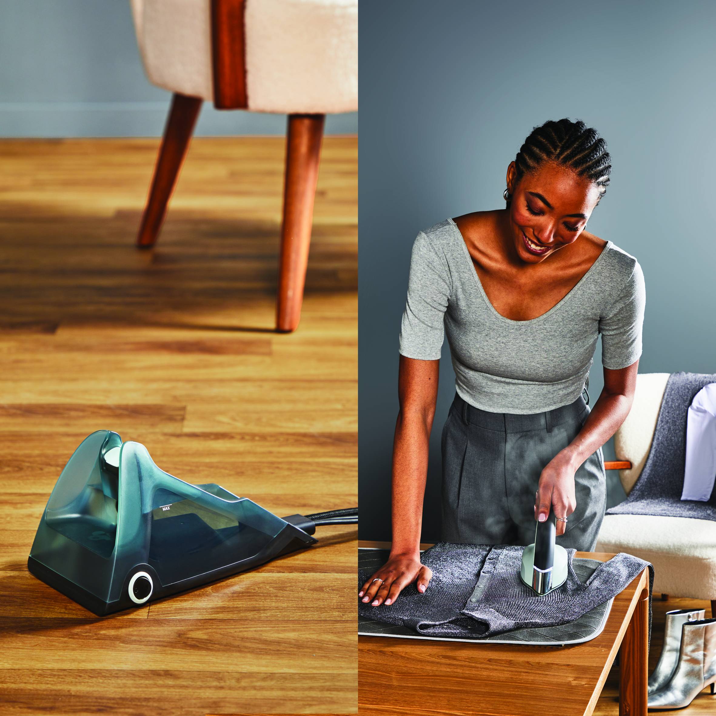 - Parowanie pomaga nie tylko w usuwaniu zagnieceń, ale także w utrzymaniu tkanin w lepszym stanie przez zmniejszenie zużycia materiału