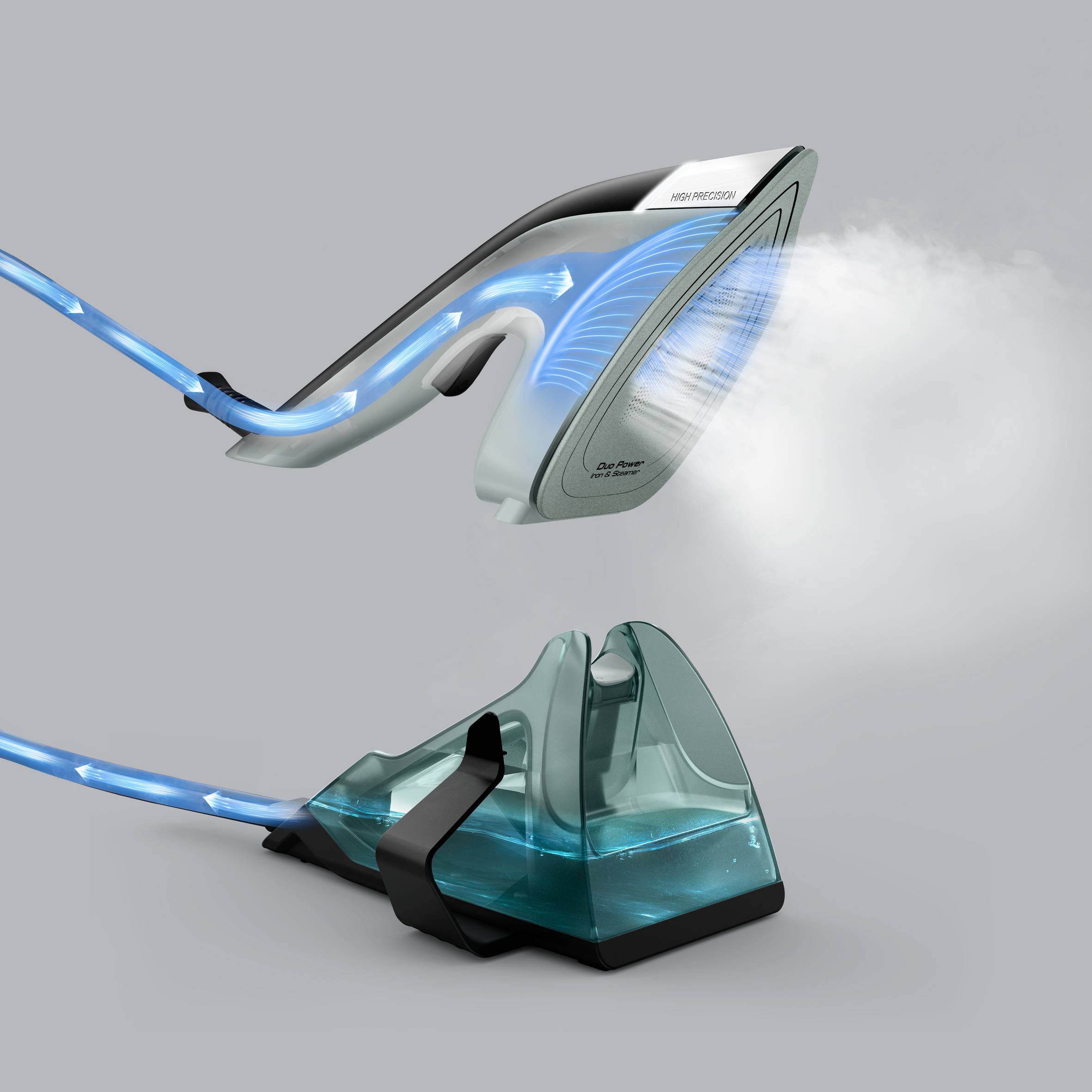 - W zestawie z żelazkiem parowym znajduje się specjalna mata, która chroni powierzchnię przed wysoką temperaturą i wilgocią, a także sprawia, że Tefal Duo Power z matą staje się idealną alternatywą dla tradycyjnej deski do prasowania