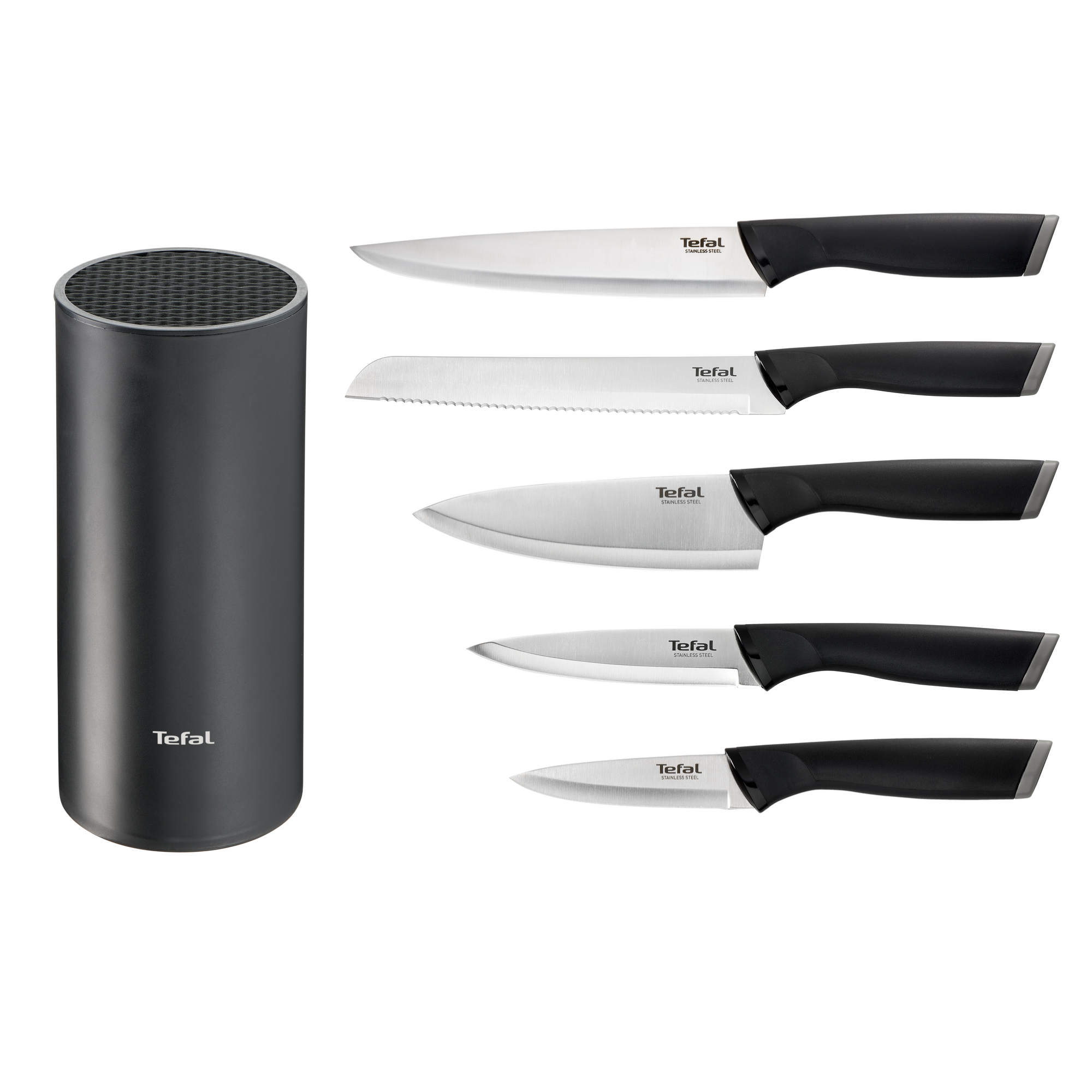 Zestaw 5 noży ze stali nierdzewnej TEFAL FRESH KITCHEN + drewniany blok