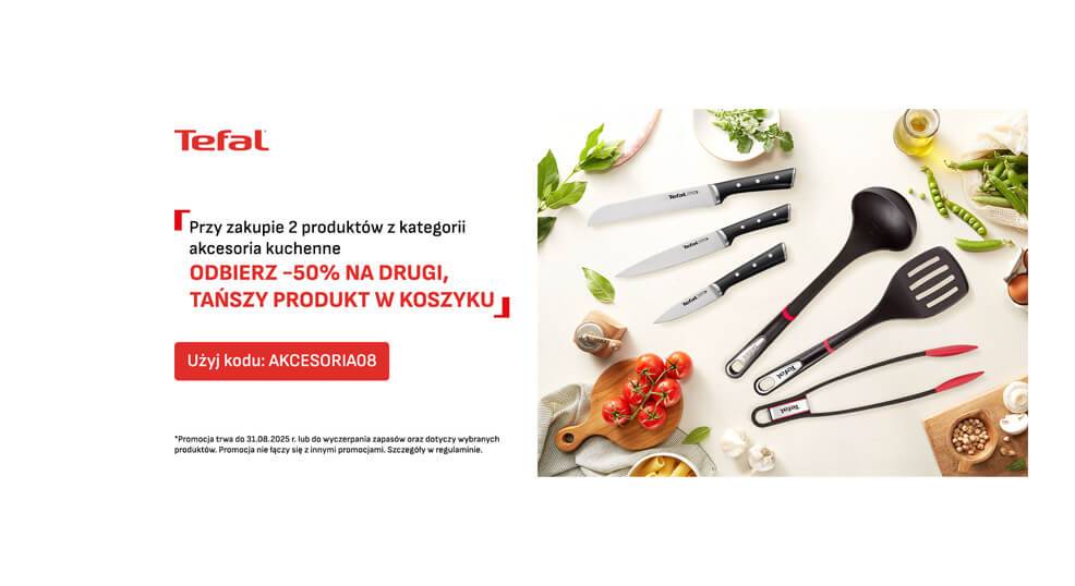 Akcja z kodem promocyjnym trwa od 13.10.2025 r. do 19.11.2025 r., pula kodów 400, kod: TEFAL50 na 50 zł. Kod łączy się z innymi promocjami w sklepie.