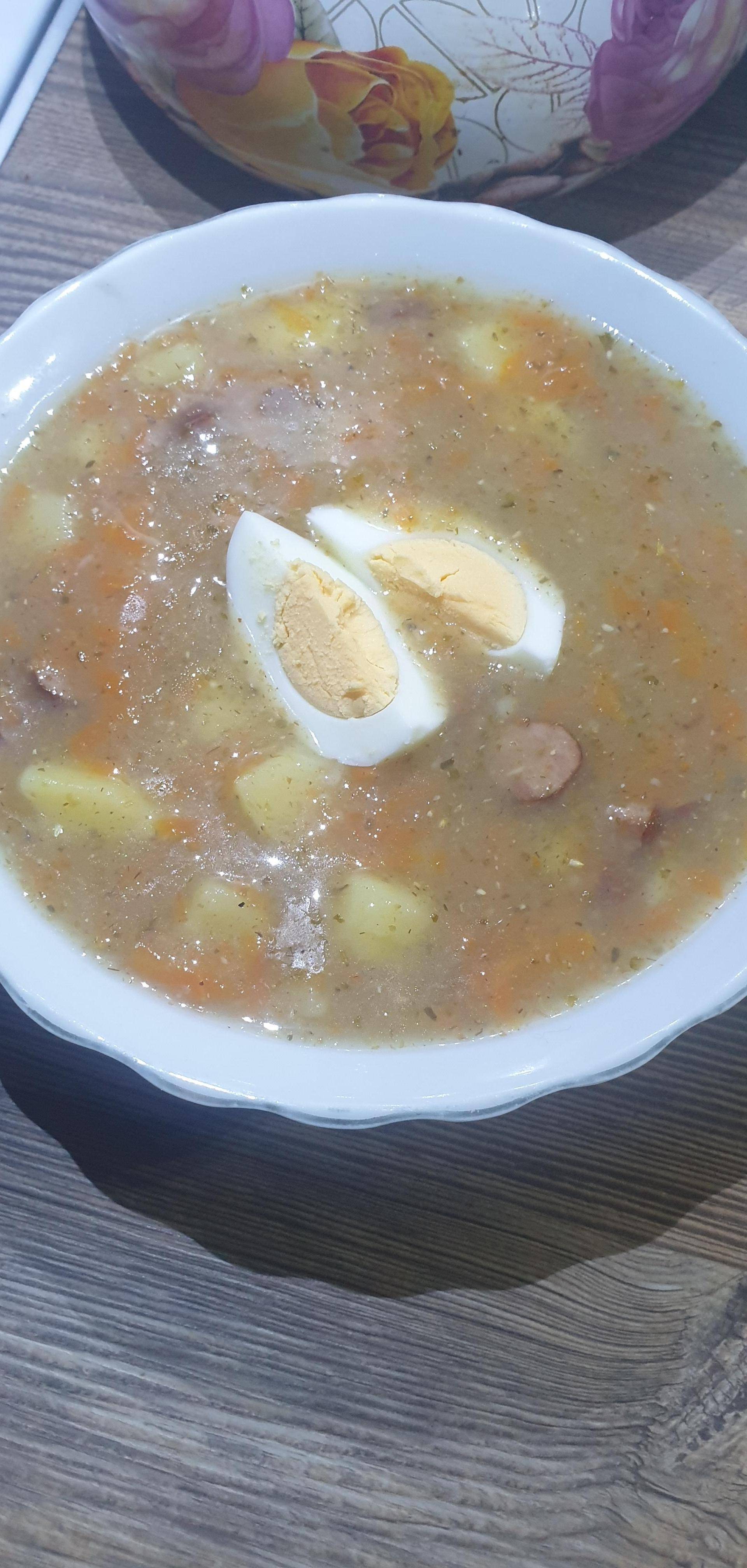Przed podaniem żurku, do każdej porcji dajemy połówkę jajka. Gotowe