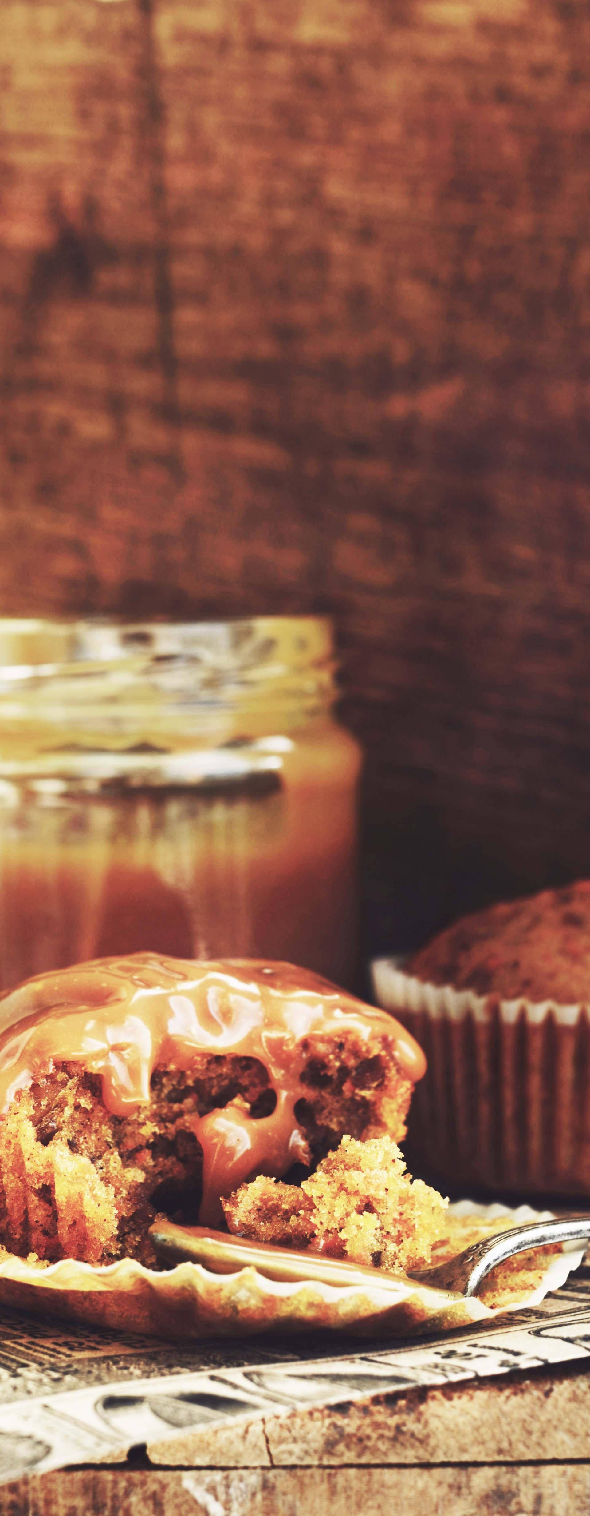 Około połowę masy ciasta rozdziel do foremek na babeczki, na środku włóż łyżeczkę kremu kajmakowego i zalej pozostałym ciastem. Włóż foremki do Cake Factory.