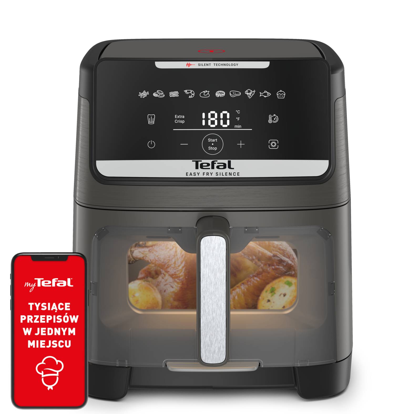 Do urządzenia wyłożyć papier do pieczenia. Wyrośnięte ciasto delikatnie rozwałkować na oprószonym mąką blacie i wyłożyć na przygotowany wcześniej papier. Spód ciasta smarujemy dowolnym sosem i wykładamy ulubione składniki.