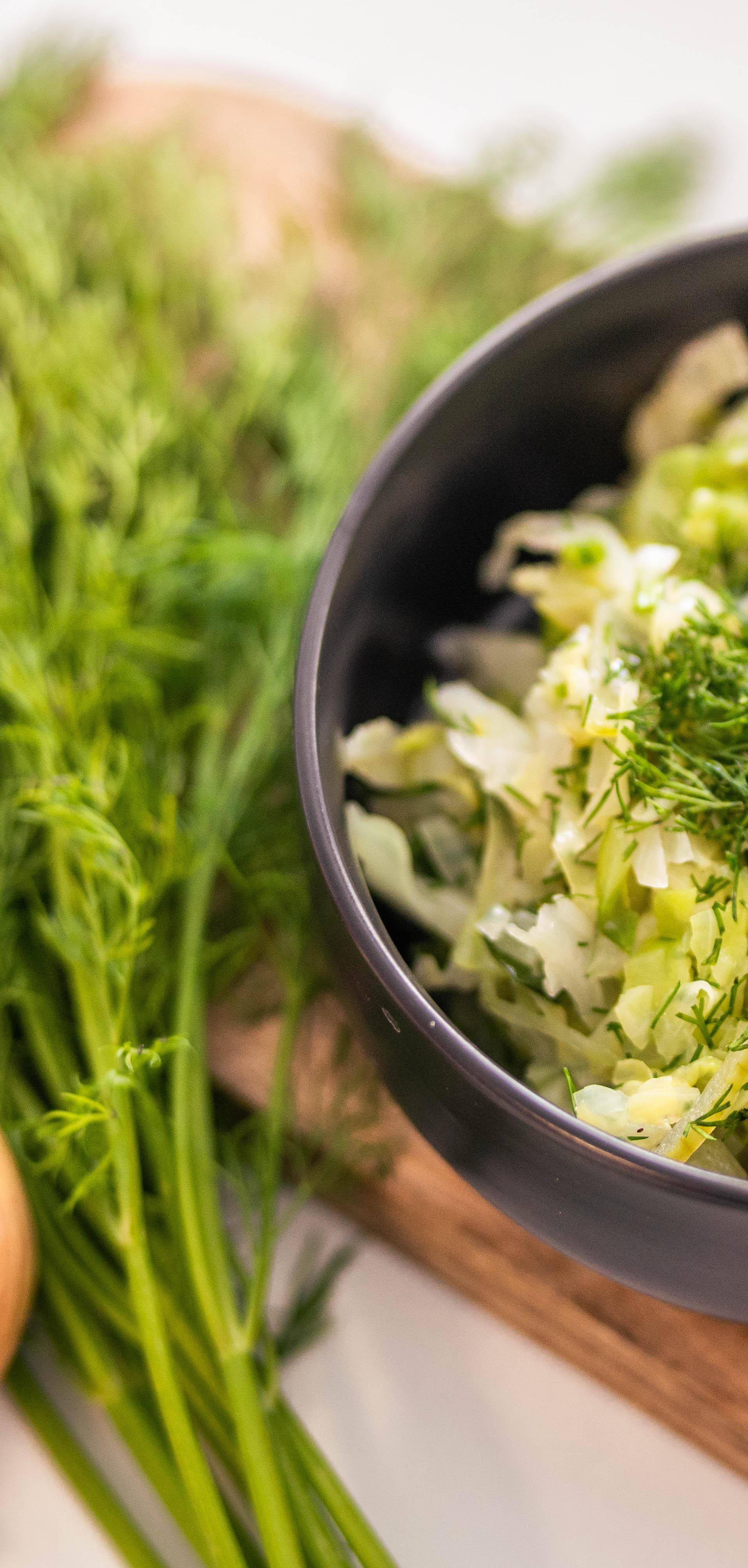 Posyp koperkiem dodaj cukier, ocet, sól i pieprz.