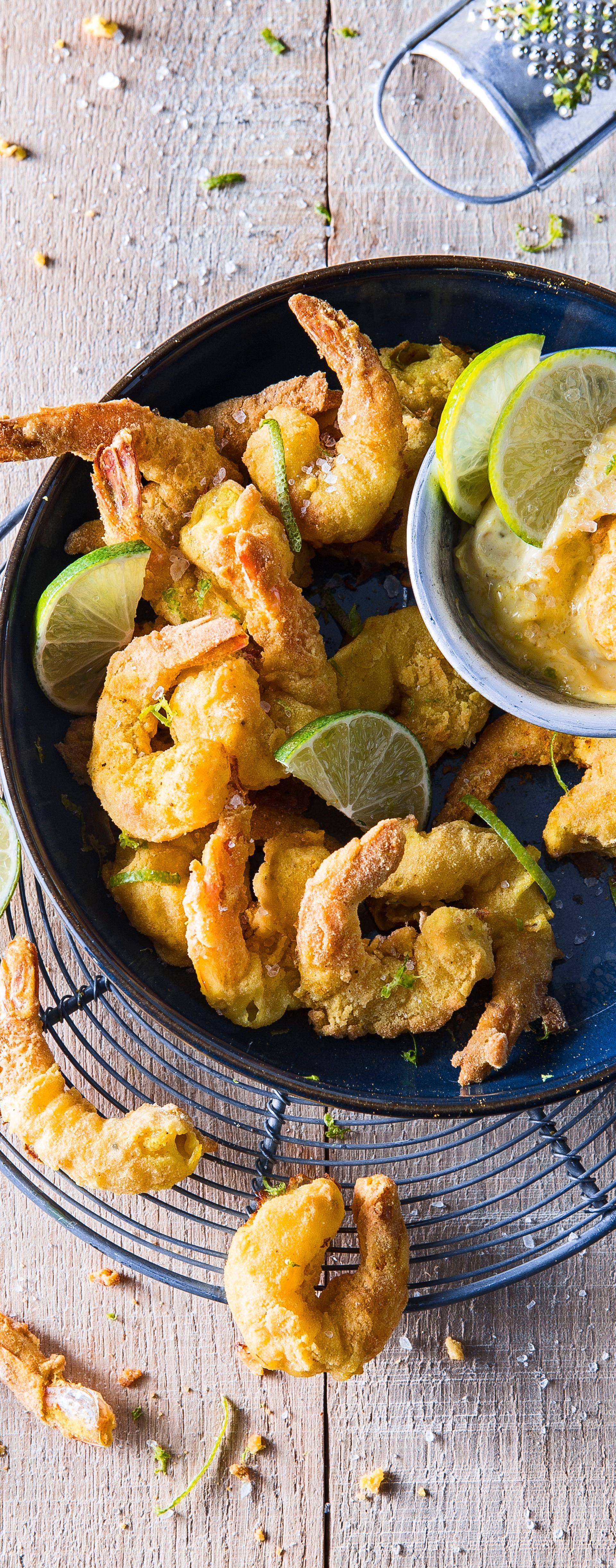 Włóż do 3 oddzielnych miseczek mąkę, jajka i bułkę tartą. Kolejno obtaczaj krewetki w każdej z miseczek.