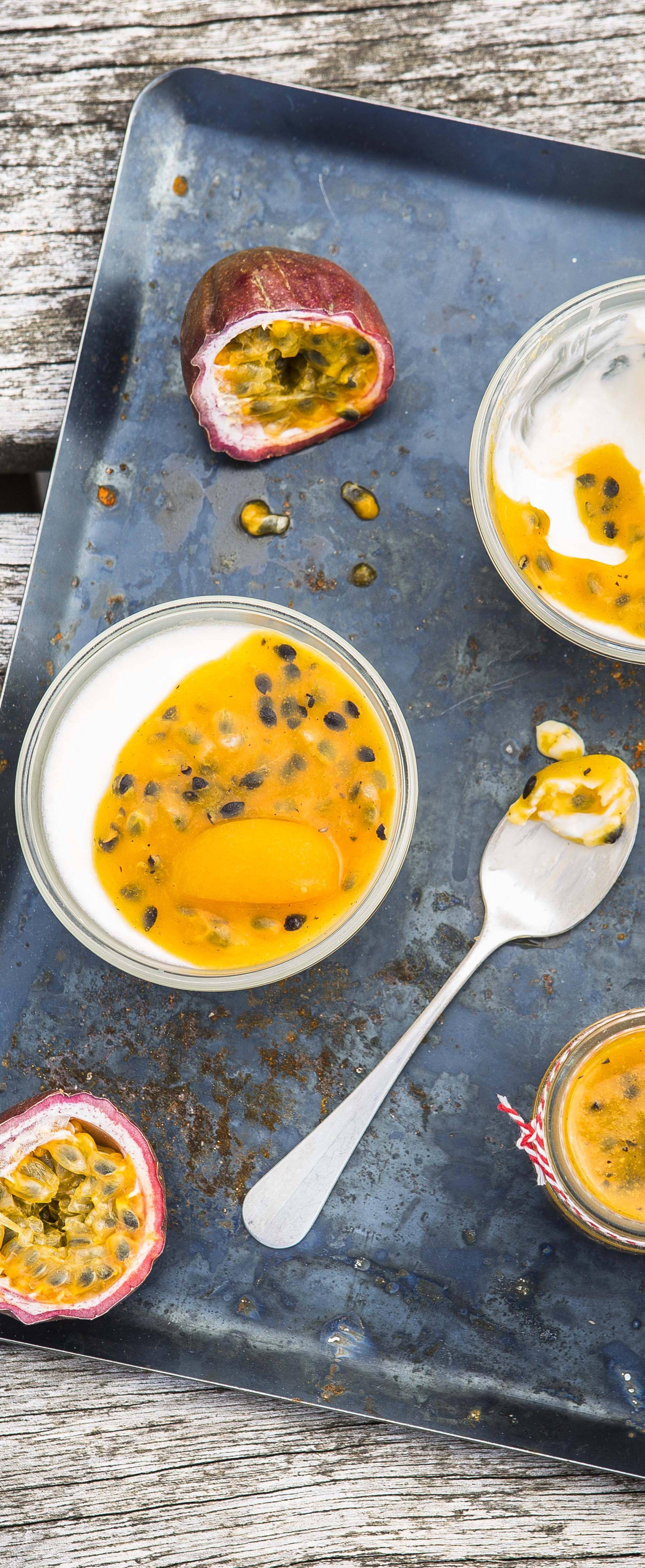 Rozdziel na słoiczki. Schłódź w lodówce. W Cook4me umieść miąższ marakui, morele, miód i wodę.