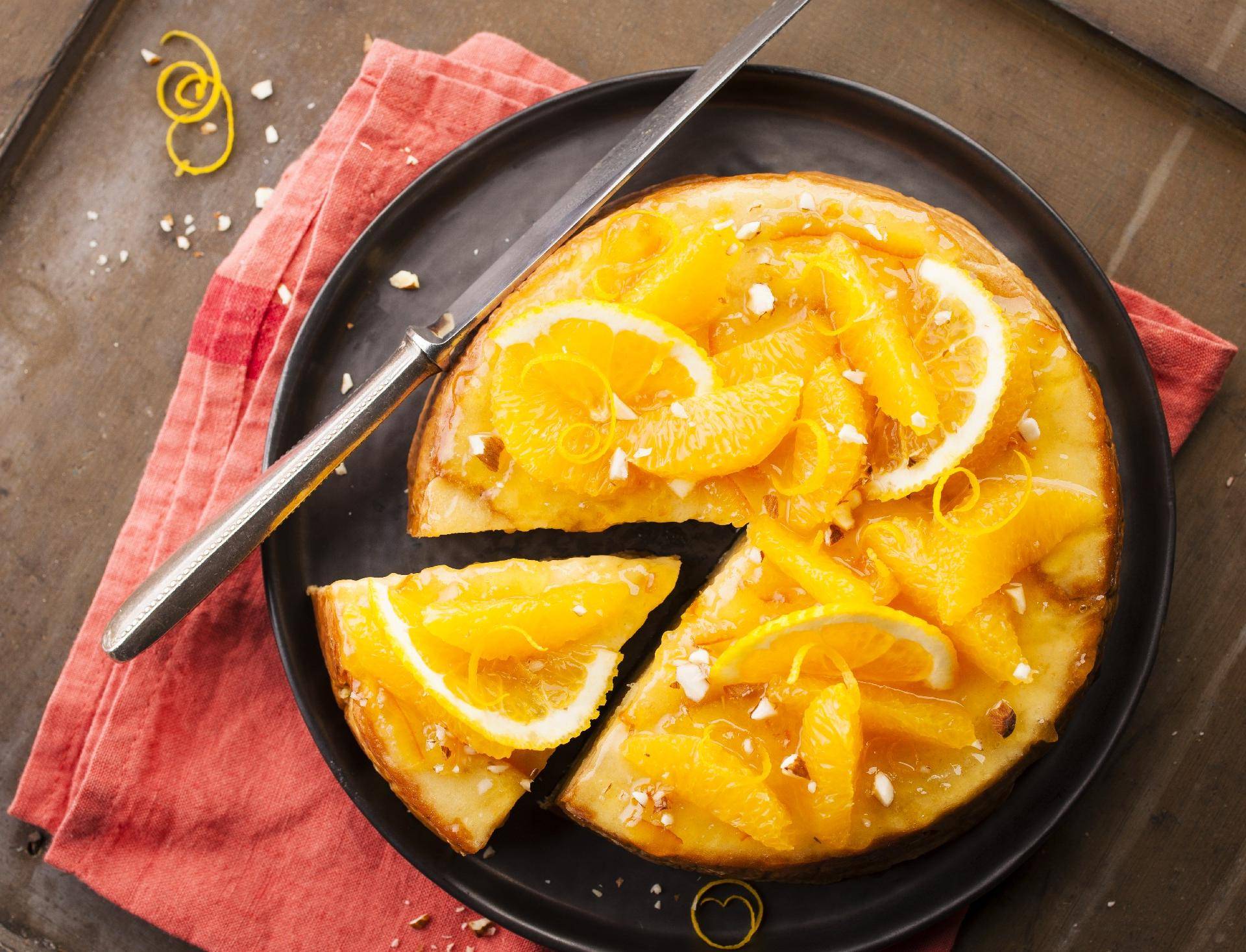 Wyjmij ciasto z formy. Posyp cukrem pudrem i podawaj na ciepło. Udekoruj kilkoma plasterkami pomarańczy.