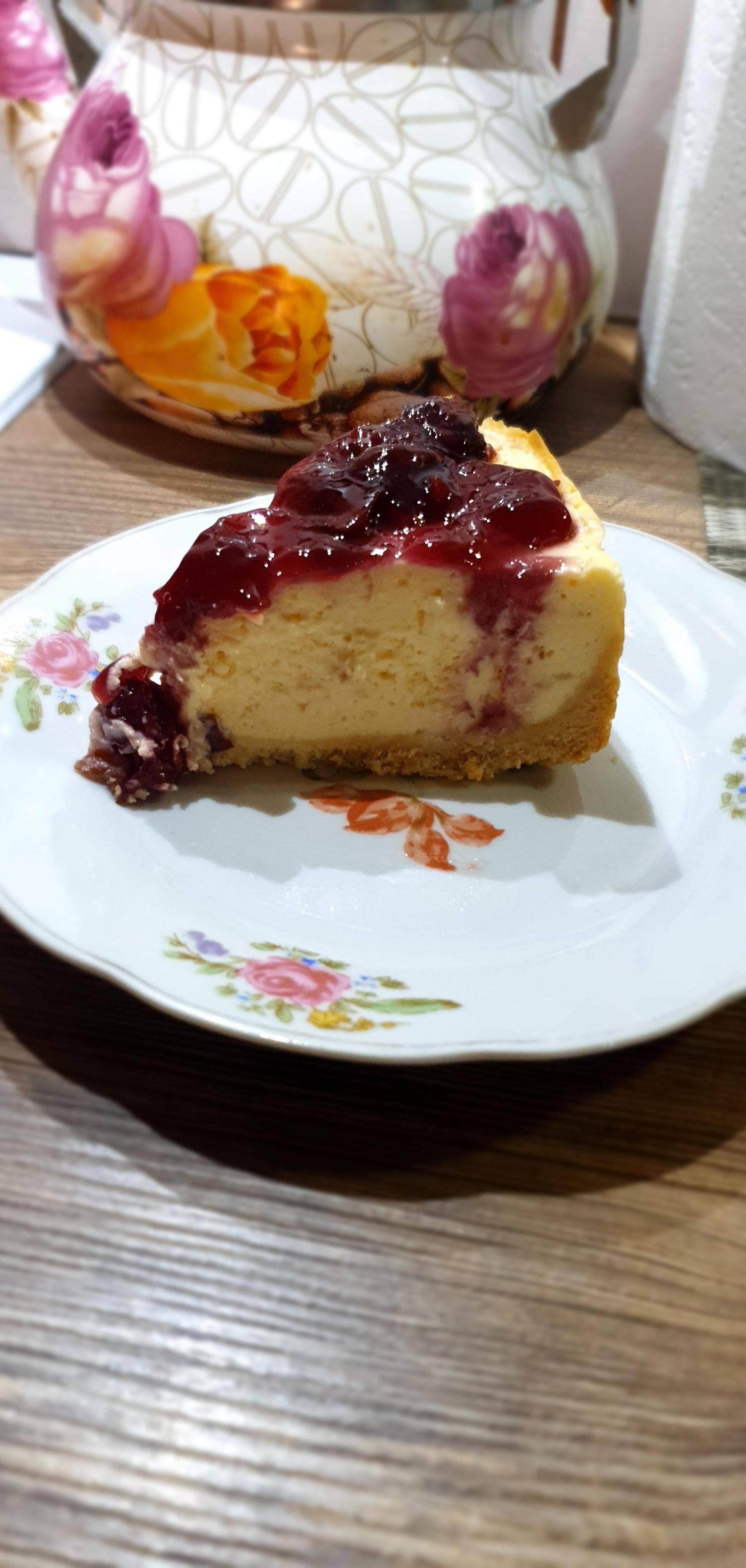 Gdy sernik jest już wystudzony, wierzch smarujemy konfiturą wiśniową. Następnie chłodzimy przez co najmniej kilka godzin w lodówce.