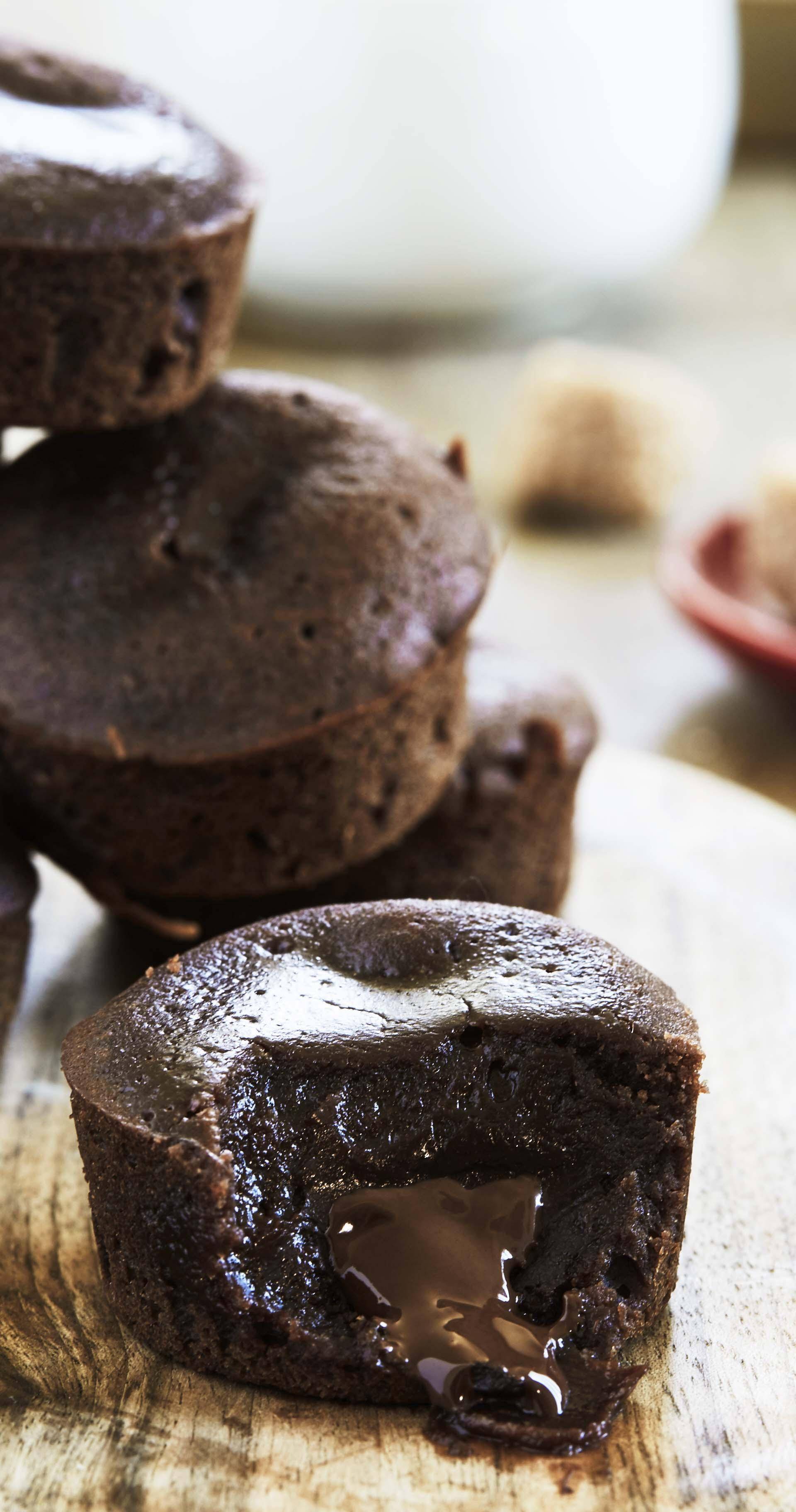 Wegańskie mini ciasteczka z płynnym środkiem z czekoladą i orzechami pekan