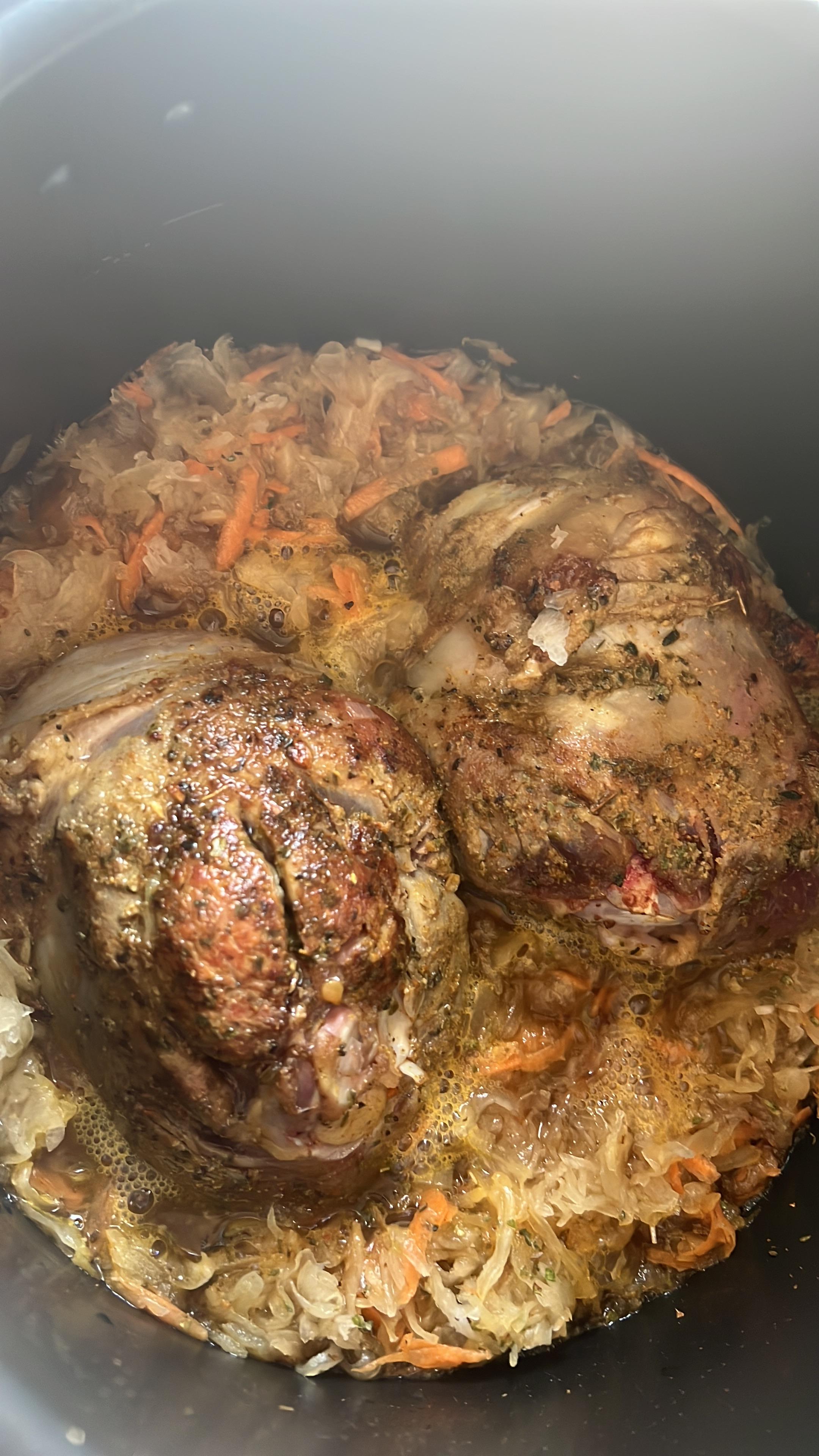 Pierwsza potrawa w Cook4me. Wyszła wyśmienicie. Dałam odrobinę więcej żeberek, kapusty i ziemniaków. Jedynie wody było za mało (początkowo wlałam około 300 ml) i Cook4me wyświetlił komunikat że ma za mało wody do uzyskania ciśnienia. Po dolaniu około 250 ml było ok, ale przez to czas gotowania się wydłużył (przez długie fazy rozgrzewania dla uzyskania odpowiedniego ciśnienia). Mimo to warto było poczekać ☺️