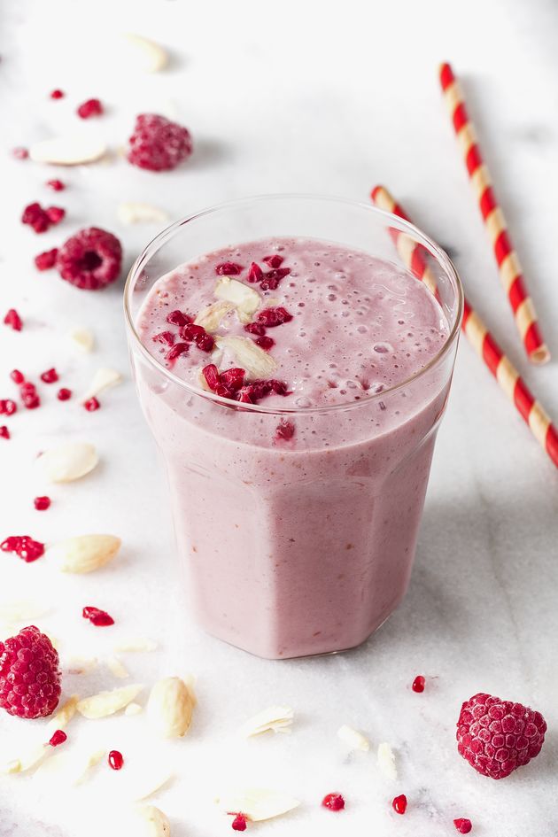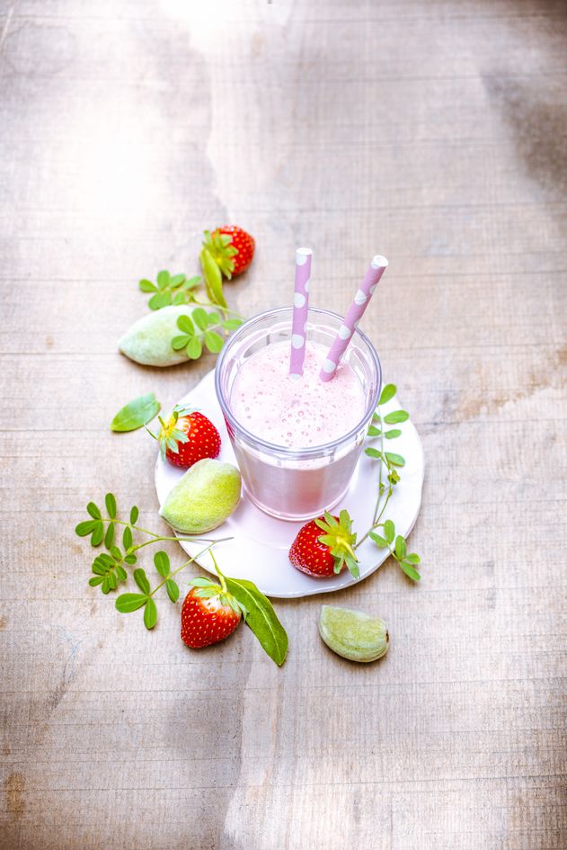 Przelej koktajl mleczny do szklanek i posyp cukrem klonowym.