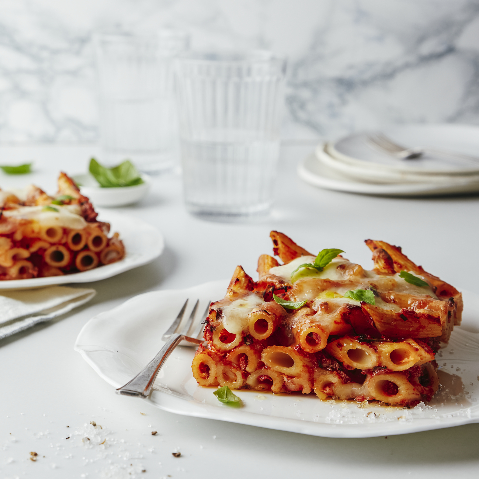 W małym naczyniu ułóż naprzemiennie warstwy plasterków bakłażana i sera mozzarella. Posyp parmezanem i włóż do miski. Wznów wskazany program i piecz przez 8 minut. Jeśli posiadasz urządzenie Easy Fry Oven&Grill 9in1, połóż wszystko na płycie grillowej, wznów program i piecz przez 8 minut.