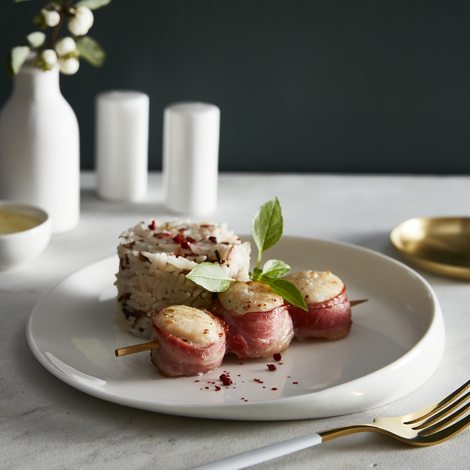 Włóż tacę grillową do urządzenia i wybierz tryb GRILL, a następnie nagrzewaj przez 15 minut w temperaturze 200°C. Po rozgrzaniu urządzenia połóż 4 kotlety na grillu i piecz przez 2 minuty. Obróć i połóż na nich ser. Połóż 8 plasterków boczku wokół hamburgerów na tacy. Piecz przez 2 minuty, a następnie weź pozostałe kotlety i powtórz kroki. Na każdym hamburgerze połóż dodatki.