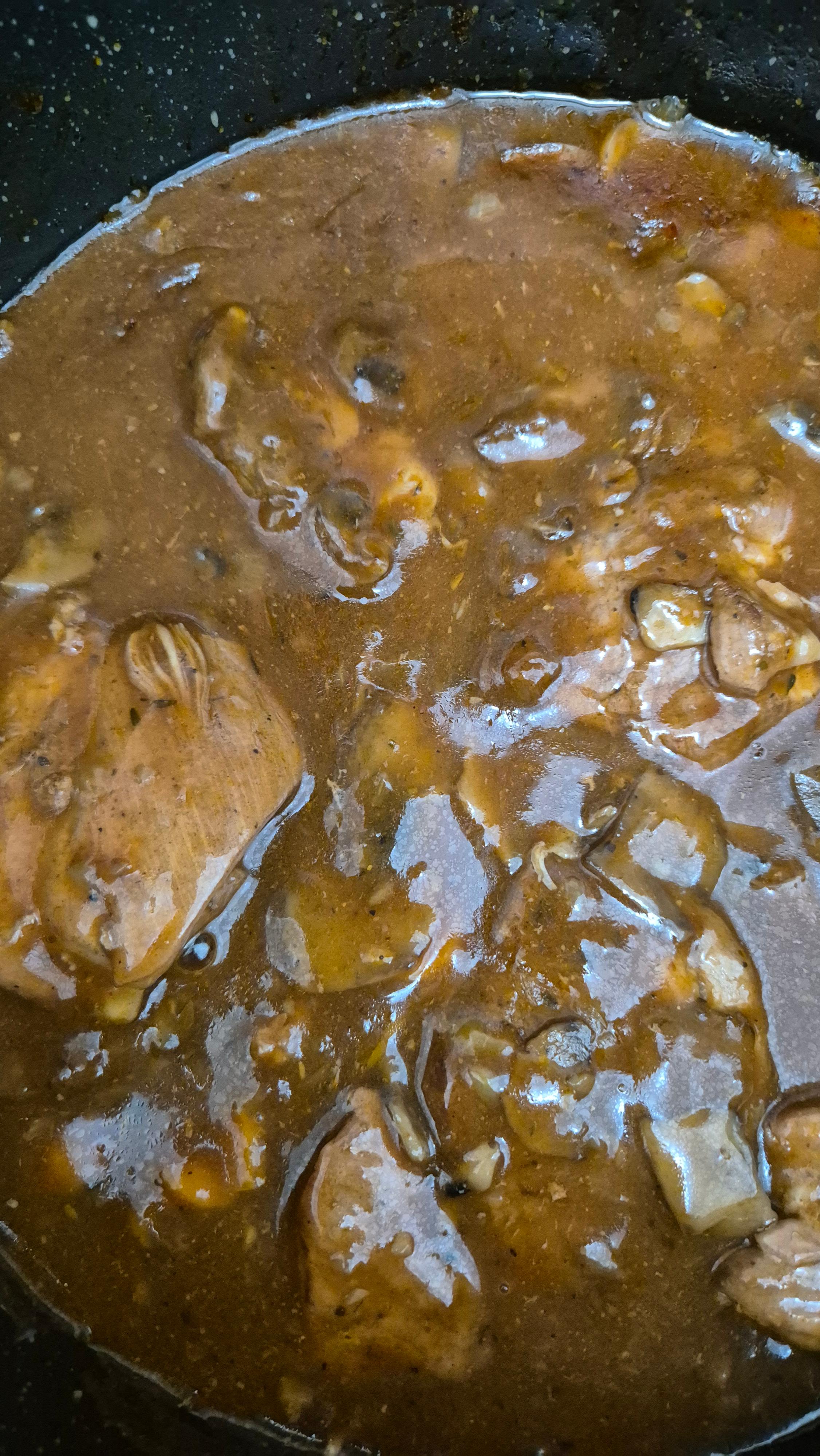 Po upieczeniu przełóż wołowinę na deskę do krojenia i poczekaj 5 minut. Następnie pokrój ją na plasterki i podawaj z sosem pieczarkowym.