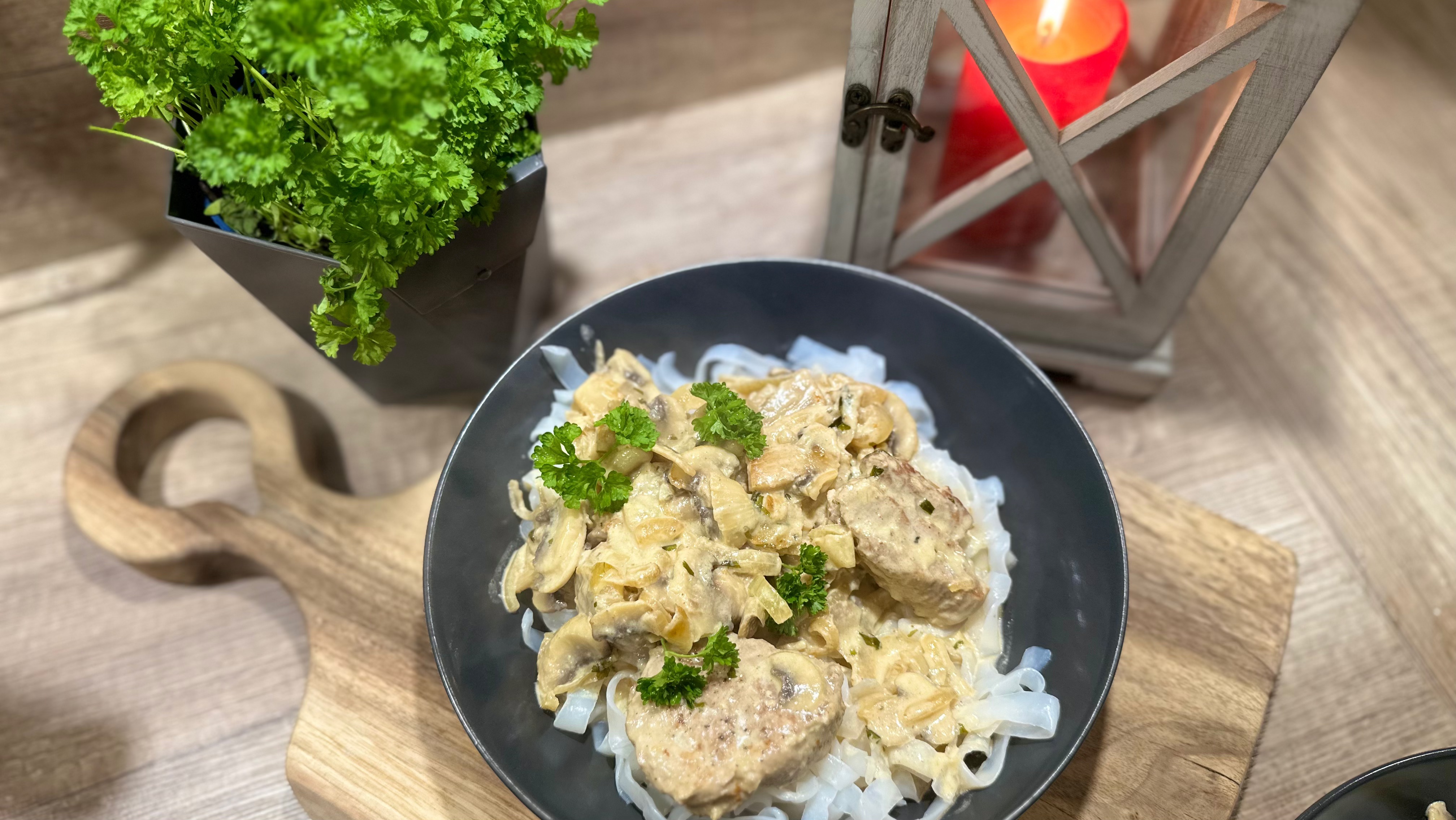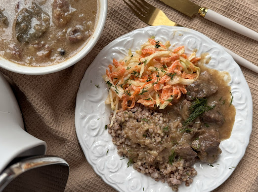 Grillowana wołowina z pieczarkami w sosie Strogonoff