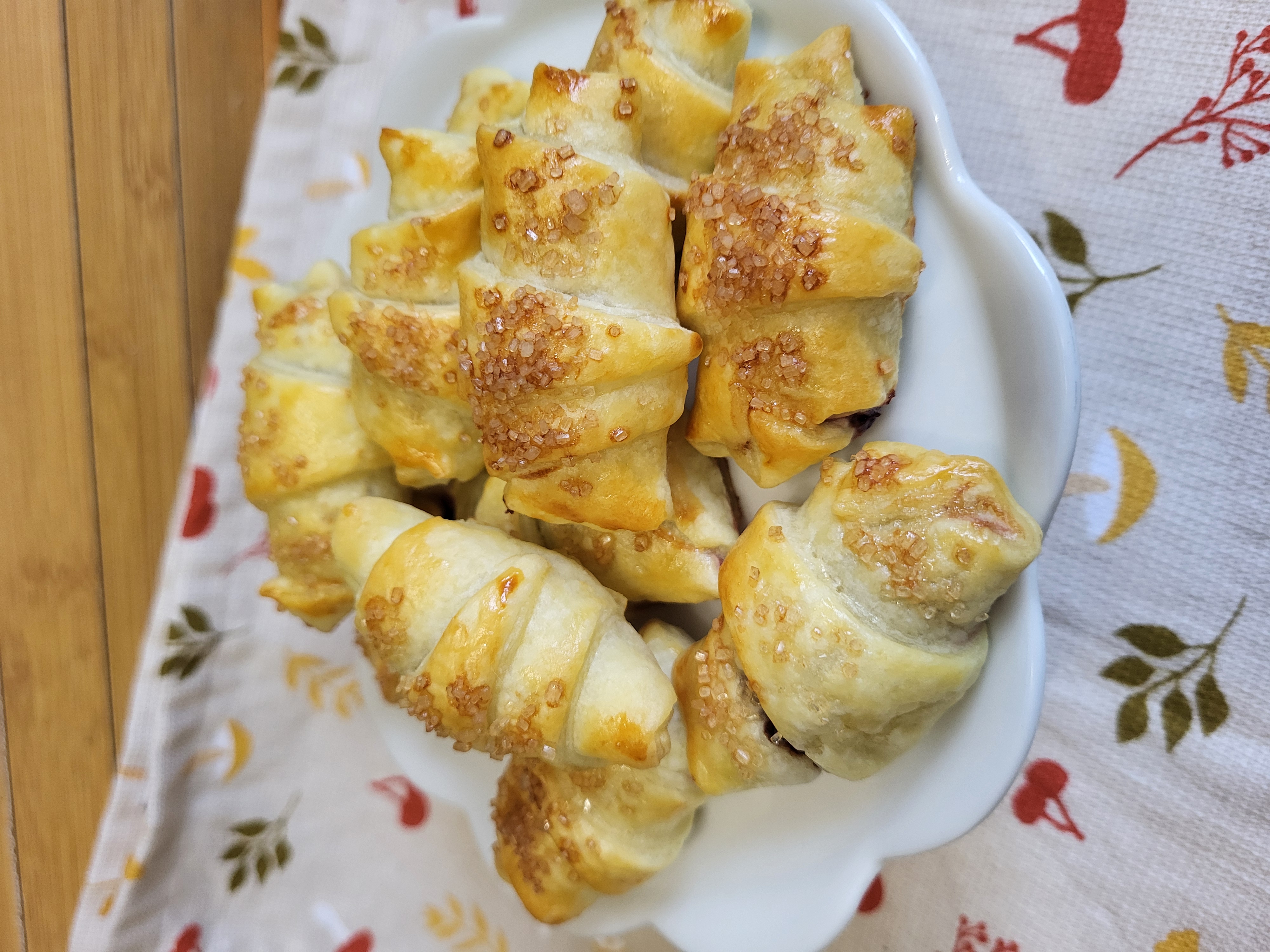 Ułóż koperty na kratce urządzenia. Posmaruj roztrzepanym jajkiem. Piecz od 21 do 23 minut. Po 20 minutach zacznij już sprawdzać swoje ciasteczka, aby nic nie przypalić. Tryb manualny: 180°C, 23 minuty.