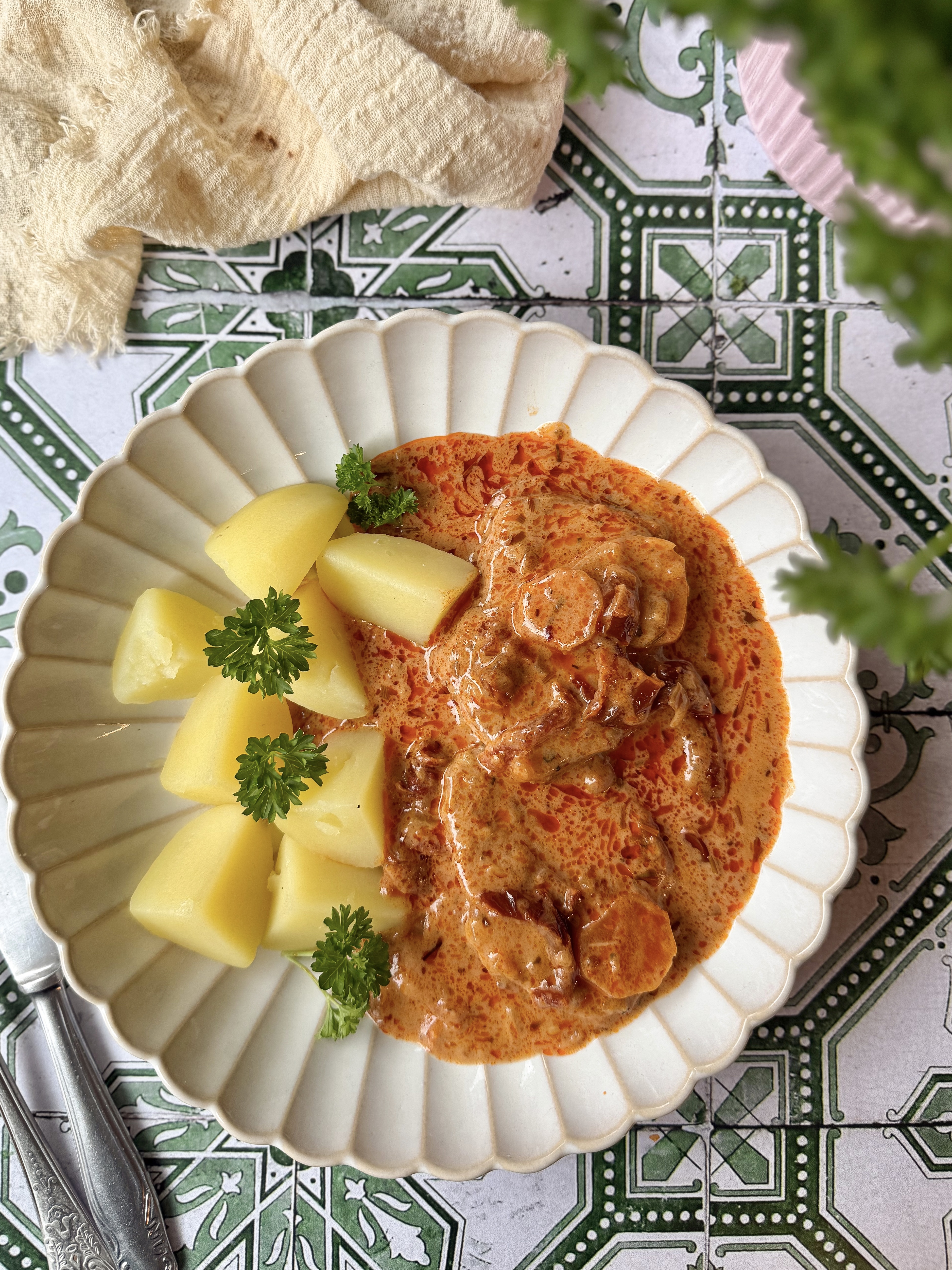 Wyjmij schab i daj mu odpocząć 10 minut. Następnie pokrój w plastry i podaj w towarzystwie sosu z ulubionymi warzywami oraz kluskami.