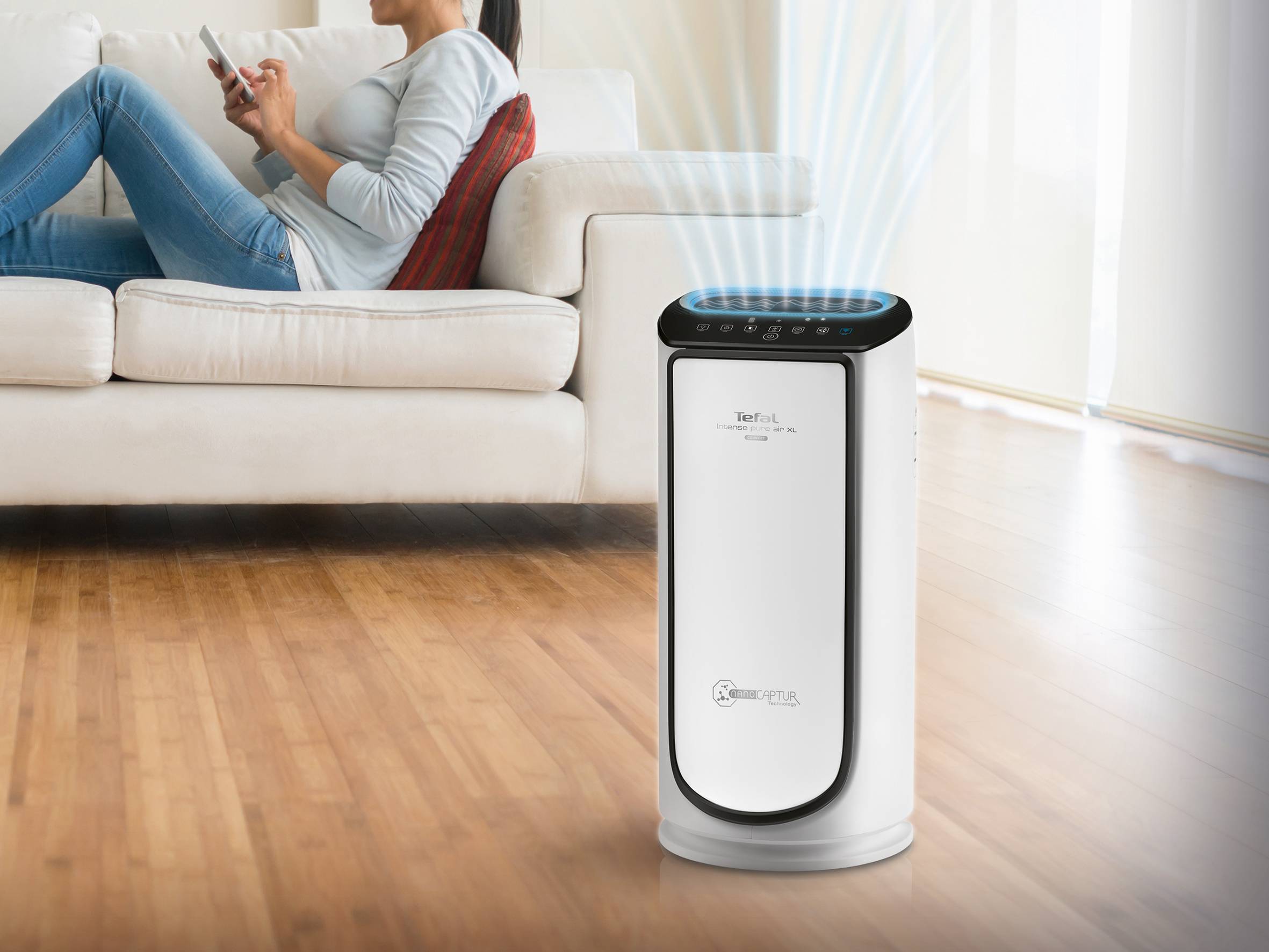 Oddychaj powietrzem wolnym od alergenów*. Filtracja do 100% najmniejszych cząsteczek i alergenów**. Badania kliczniczne przeprowadzone przez Centrum Badawcze Alyatec w Strasburgu potwierdziły skuteczność oczyszczacza Tefal.. 4-poziomowa filtracja, z opatentowanym filtrem NanoCaptur™, skutecznie eliminuje nawet drobne cząsteczki i trwale usuwa formaldehyd, najbardziej szkodliwe zanieczyszczenie we wnętrzach**. Komfort użytkowania oczyszczacza zwiększa aplikacja mobilna monitorująca i informująca na bieżąco o jakości powietrza wewnątrz i na zewnątrz. Aplikacja pozwala także zdalnie zarządzać pracą urządzenia np. włączyć je przed powrotem do domu. *Badanie kliniczne 24 pacjentów wrażliwych na sierść kotów przeprowadzone w marcu 2018. Intense Pure Air Connect usuwa najmniejsze cząsteczki, wraz z alergenami. **Test zewnętrzny filtra Allergy+ przeprowadzony w listopadzie2017 *** Test zewnętrzny przeprowadzony we wrześniu 2018