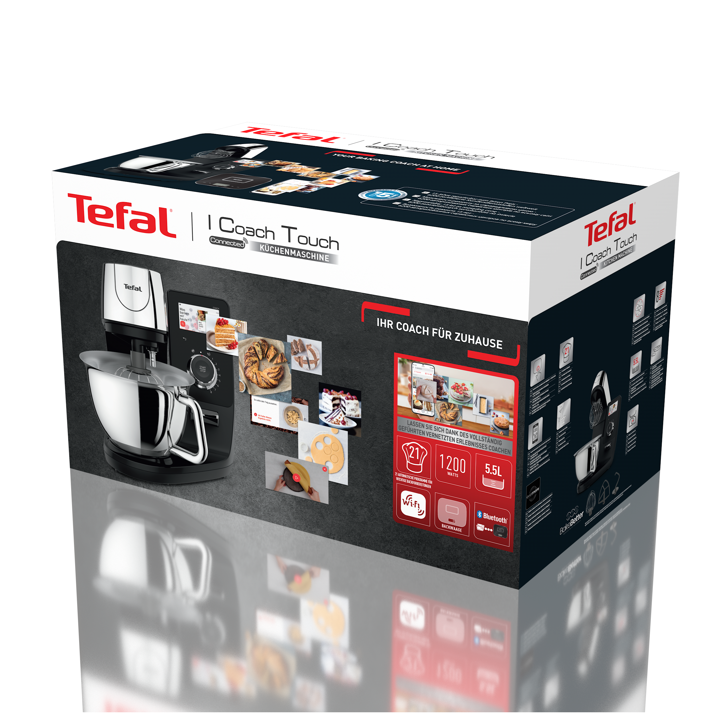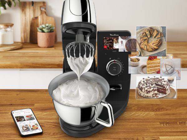- Możesz poszerzyć swoją wiedzę cukiernictwa dzięki: darmowej aplikacji oraz wyjątkowo wygodnyemu sposobowi nauki ze wskazówkami i poradami wyświetlanymi na dużym 4,3” ekranie dotykowym i dostępem do wielu materiałów dzięki połączeniu Wi-Fi oraz darmowej aplikacji Tefal.