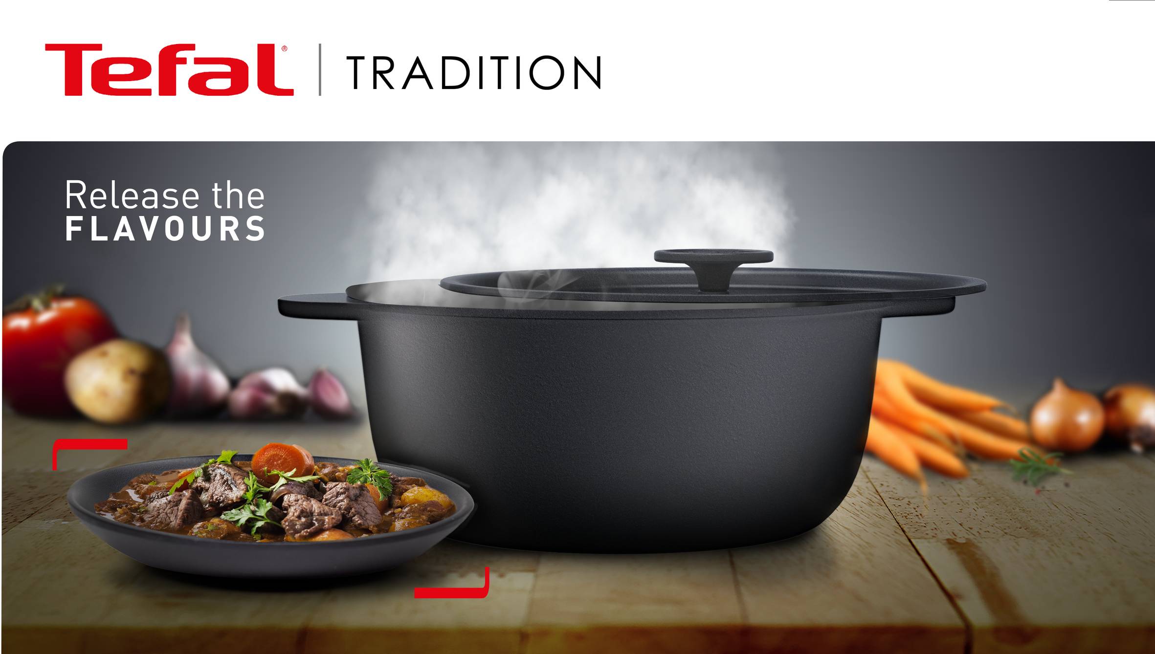 Żeliwna, brytfanna owalna Tefal Tradition to Twój sposób na wydobycie maksimum smaku z nawet najdelikatniejszych składników. Dzięki najwyższej jakości materiałom możesz cieszyć się nią przez długie lata, a doskonałe utrzymywanie ciepła pozwoli Ci uzyskać wyłącznie smaczne rezultaty. Dodatkowo specjalny system kondensacji sprawia, że bez trudu przyrządzisz wszystkie, nawet najdelikatniejsze potrawy.