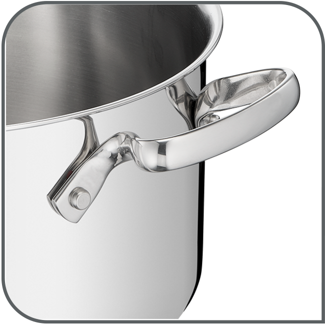 Garnki Tefal Duetto+ wykonane są z wysokiej jakości stali nierdzewnej 18/10. Nawet po latach prezentuje ona atrakcyjny dla oka połysk. Jednocześnie uchwyty naczyń Duetto+ są nitowane, co zapewnia dodatkowy, pewny i stabilny chwyt podczas wymagających kuchennych zadań.