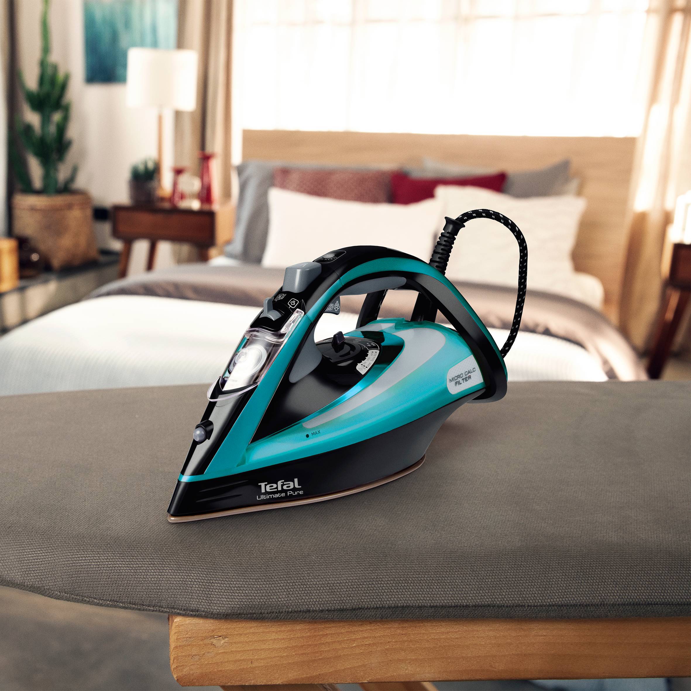 Z żelazkiem Tefal Ultimate Pure z łatwością osiągniesz idealne rezultaty prasowania! Nowy opatentowany filtr Micro-Calc skutecznie zapobiega powstawaniu plam w trakcie prasowania, podczas gdy stały strumień pary o mocy do 60 g/min sprawia, że żelazko pracuje w efektywny sposób. Dzięki dodatkowemu mocnemu wyrzutowi pary do 250 g/min z łatwością usuniesz nawet najtrudniejsze zagniecenia.