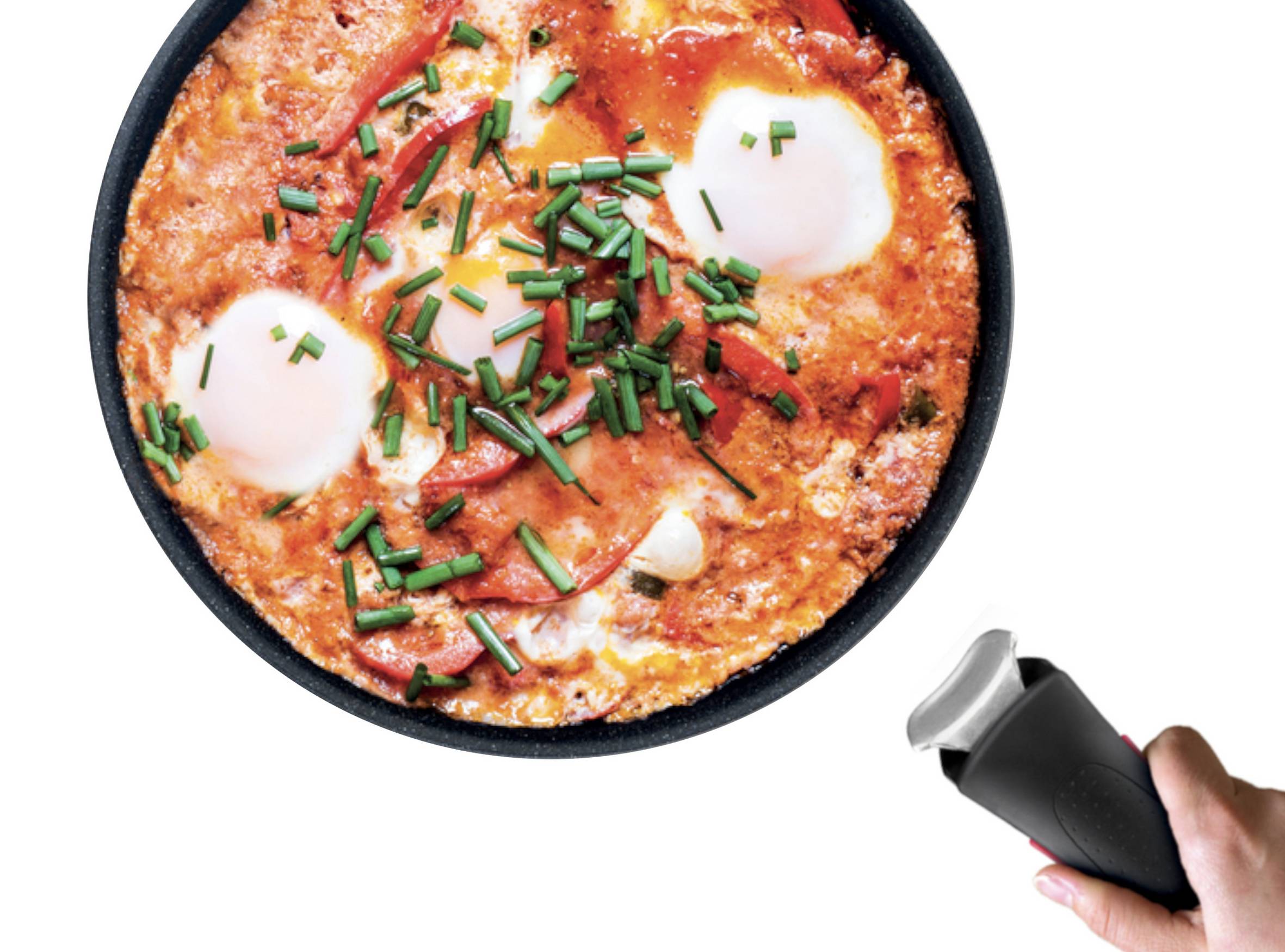 - Innowacyjny system odczepianego uchwytu: system Ingenio charakteryzuje się odczepianym uchwytem. Dzięki temu patelnie stają się wyjątkowo łatwe w przechowywaniu.